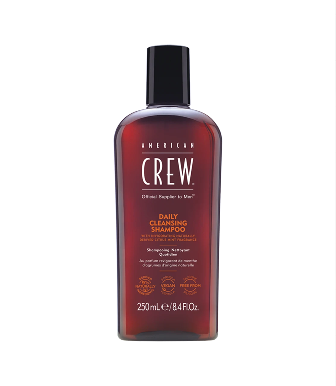 Enriched with Vitamin B5 for moisture, our silicone-free Daily Cleansing Shampoo is ideal for an everyday haircare routine. The nondrying vegan formula washes away excess oil, leaving hair more manageable, looking healthy, and feeling soft. Infused with our energizing, naturally certified American Crew Citrus Mint signature fragrance. Best for men with normal to oily hair and scalp.
