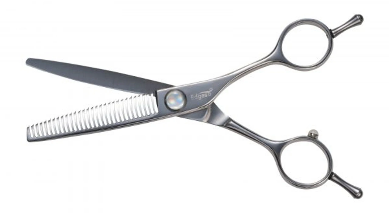 An opposed handle texturising scissor, available in a 27 or 30 radial tooth design and 5.7″ long. A finger rest on each handle allows the cutter to choose whether the cutting blade or the toothed blade is stationary.