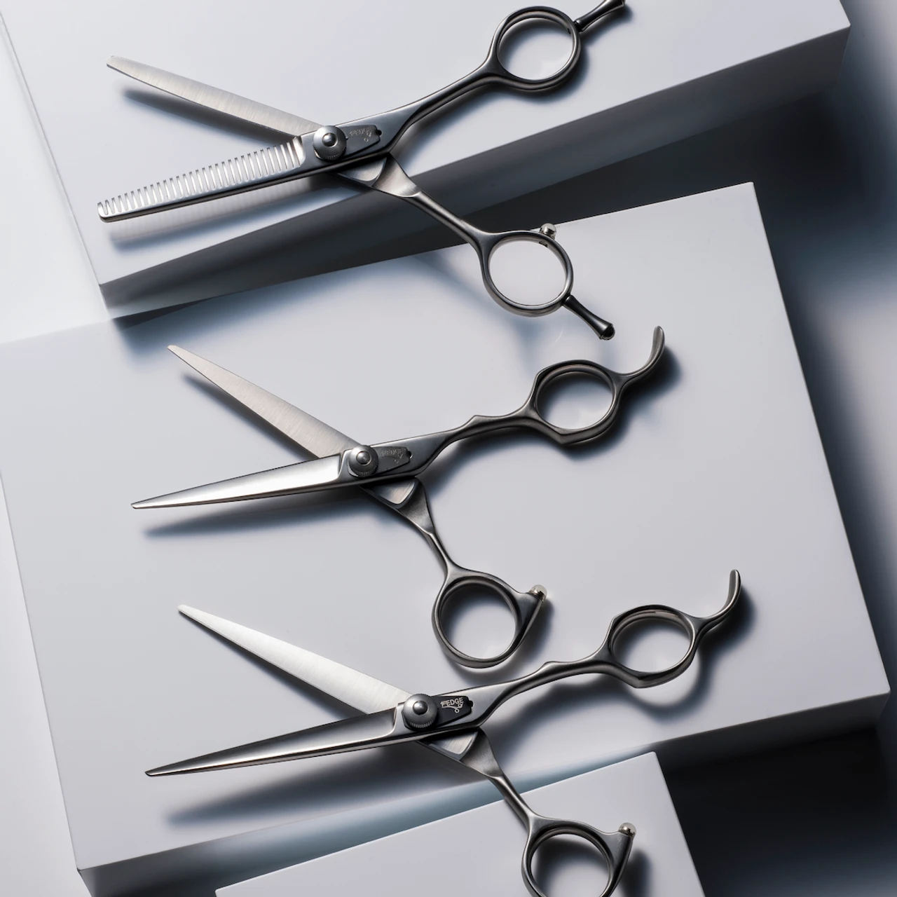 Made from Hitachi 440B so there is no compromise on the quality. The scissors have a matte satin finish. The scissors come in an aluminum case with inserts, oil and a chamois.
